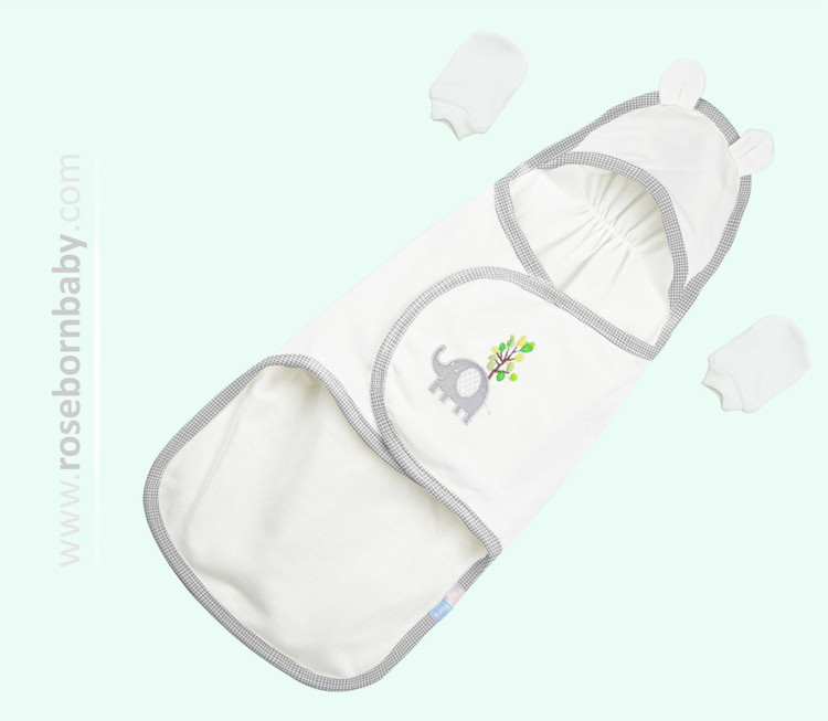 قنداق چسبی برند رزبرن همراه با کلاه و دستکش عرضه میشود که حداکثر ایمنی را برای نوزاد ایجاد می کند.