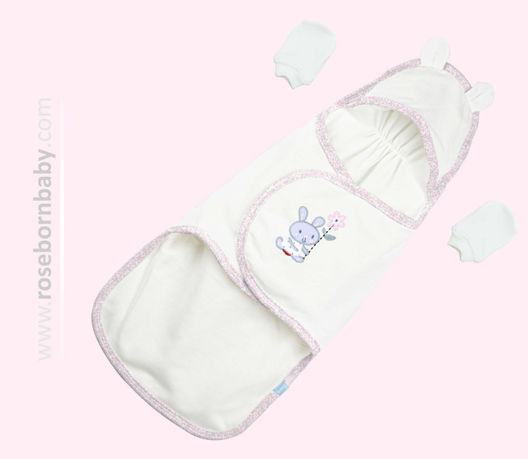 قنداق چسبی برند رزبرن همراه با کلاه و دستکش عرضه میشود که حداکثر ایمنی را برای نوزاد ایجاد می کند.