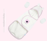 قنداق چسبی مجموعه rose born از سه تکه تشکیل شده که شامل قنداق، کلاه و دستکش نوزاد است که کامل ترین محصول نسبت به نمونه های مشابه در بازار می باشد .