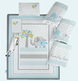 محصولی که مشاهده میکنید با طرح family love-boy از مدل های خاص رزبرن بوده که شخصیت اصلی آن دو فیل طوسی و آبی در کنار هم با گوش و دم برجسته می باشد. رنگبندی ملایم و هارمونی رنگ این طرح به قدری زیباست که هر نگاهی را سمت خود می برد. رنگ قالب آن آبی فیروزه ای و طوسی روشن می باشد و با توجه به اینکه دخترانه همین طرح نیز قابل سفارش است، برای هر کودکی مناسب می باشد.