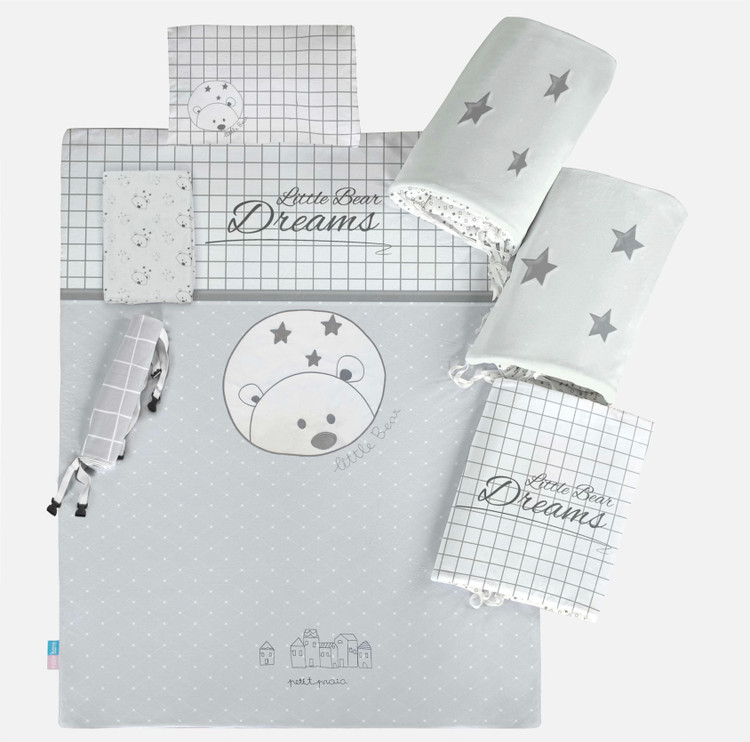 محصولی که مشاهده میکنید با طرح little dreamبوده که یک طرح شگفت انگیز به رنگ سیلور و طوسی می باشد. شخصیت اصلی آن، یک خرس طوسی رنگ کارتنی بوده که به همراه پترن های خاصی که در پس زمینه آن کار شده، این طرح را به یکی از خاص ترین و زیباترین طرح های برند roseborn تبدیل کرده است. این کار به صورت uni-sex بوده و هم برای دختر و هم پسر قابل سفارش میباشد.